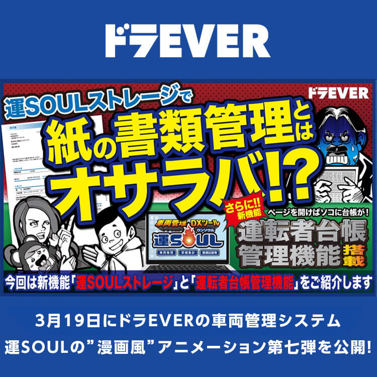 配車・運行業務を効率化!クラウドサービス「運SOUL」を実演!株式会社ドラEVER、名古屋スマート物流EXPOに出展決定! 株式会社ドラEVER(本社:東 ...