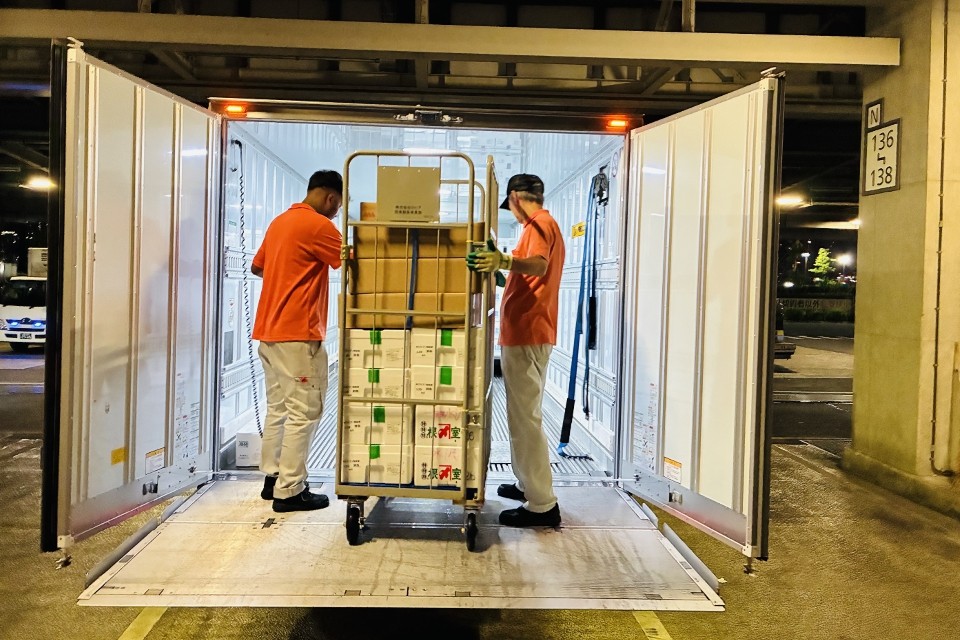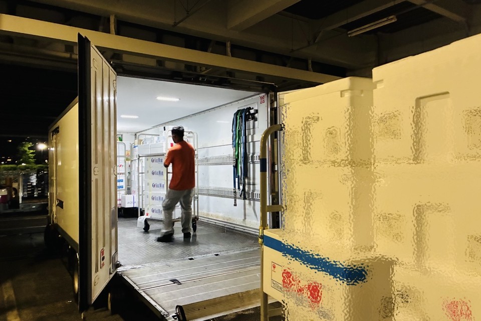 午前2時~ 拠点(豊洲、横浜本場市場)で仕分け、積み込み