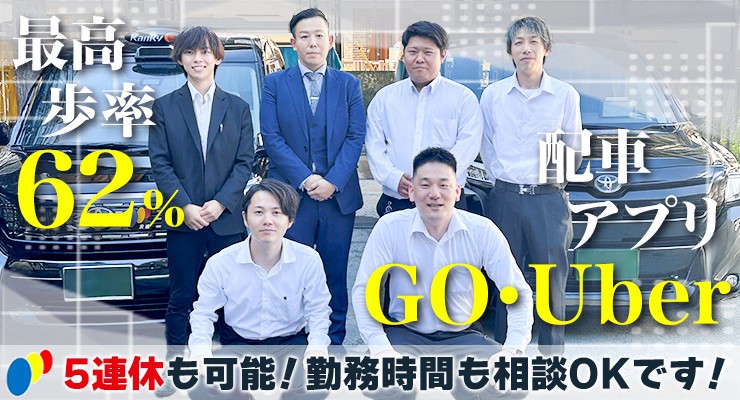 ・業界トップクラスの高歩合率62%! ・稼ぐ方だと月に140万円以上の高売上! ・5日連続の休暇も可能! ・「GO」「Uber」の2つの配車アプリを導入!