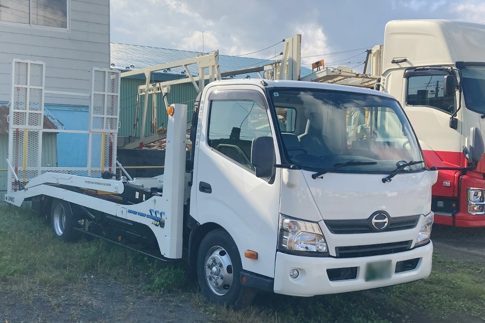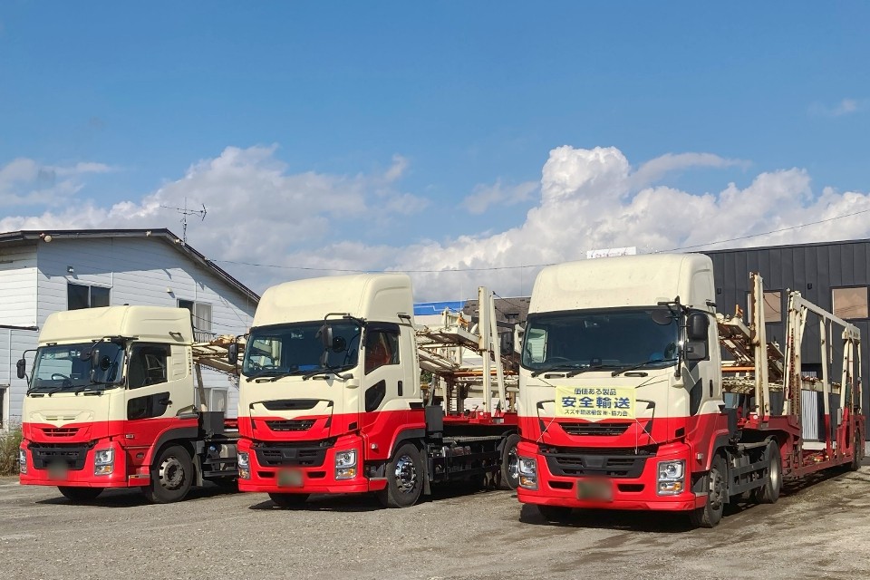 本社北海道で大手自動車メーカーの新車を運んでいます。各販売店へ安全を最優先に輸送を行っています。