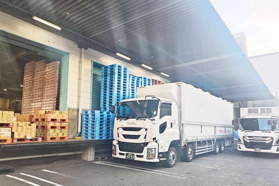 営業所で積み込みをし、大阪府内のセンターや問屋さんにむけて配送していただきます。