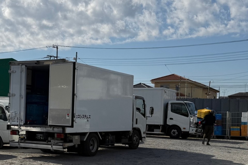 冷凍車・冷蔵車・ドライ車で飲食店や老人ホームへ食材を配送します。