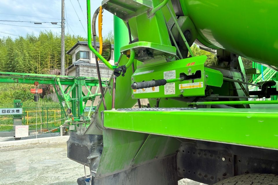 一日の終わりにミキサー車を洗車し、業務終了です。