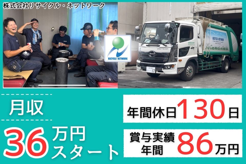 \職場の合言葉は「お互い、いい人生にしようぜ!」/✨未経験の方でも月収36万円スタート✨会社の利益はボーナスで還元(賞与年2回)✨年間休日130日でプライベートも重視✨日中の時間帯には帰宅できます♪3t・4tトラックでの回収ドライバー募集!
