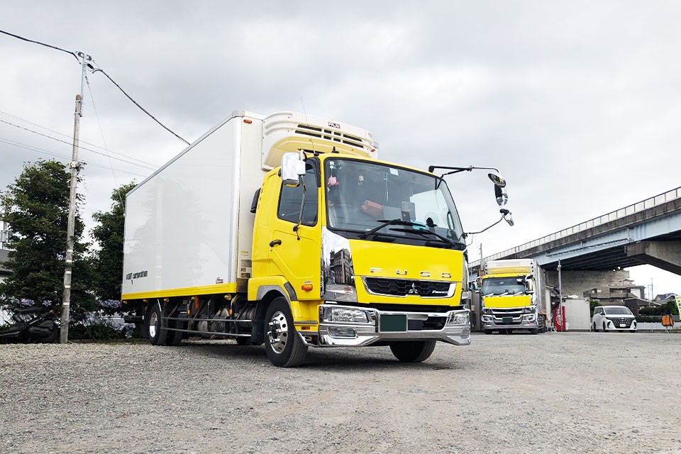 さらに、冷凍・冷蔵運送にも対応しており、大型21台・中型7台・小型3台の冷凍車を活用し、多様な温度帯の商品を確実かつ迅速に配送。