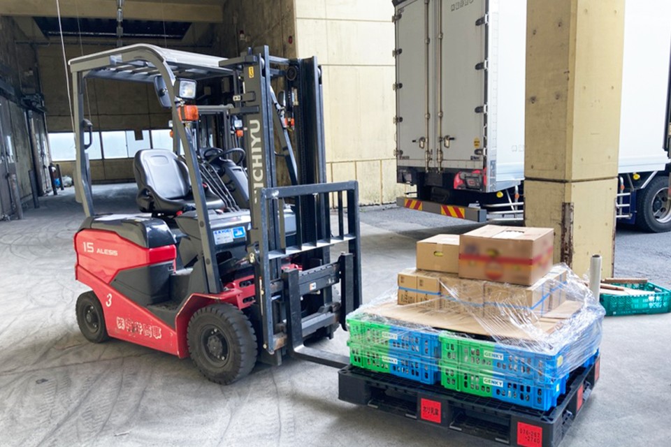 積み荷は青果・食品などの軽量な箱詰め野菜が中心です。