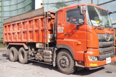 大型トラックにて
