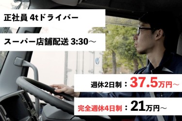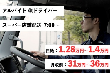 【アルバイト 4t食品配送ドライバー / スーパー店舗配送 /7:00~】