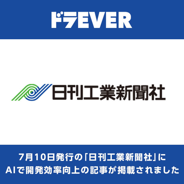 AIが変える開発現場!ドラEVERの挑戦【日刊工業新聞掲載】 先日、日刊工業新聞にドラEVERの取り組みが掲載されました!今回は、AIを積極的に活 ...