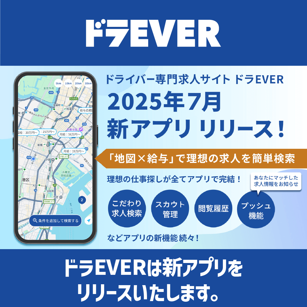 ドライバーの仕事探しはドラEVERアプリで決まり! ドライバー専門求人サイト「ドラEVER」から、アプリがさらに使いやすくなって新登場しました! ...