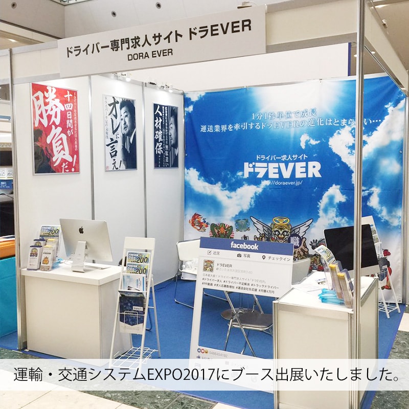 5月24日(水)~5月26日(金)までの3日間、東京ビックサイトにて開催された「運輸・交通システムEXPO2017」にドラEVERがブース出展いたしました。