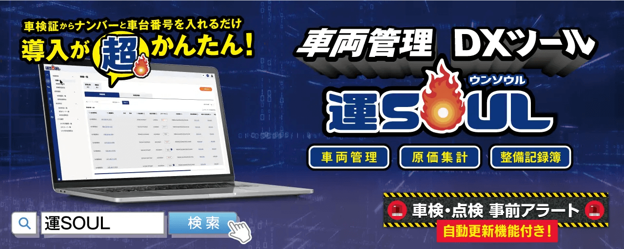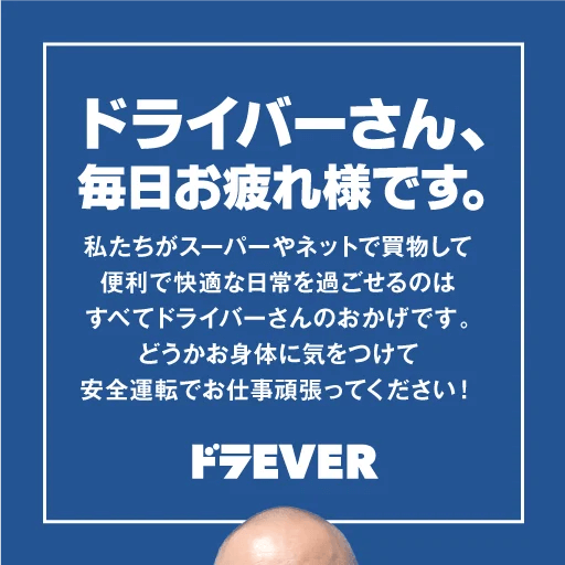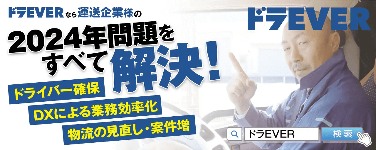 サービス認知拡大のため、「車輛管理システム 運SOUL」と「求人サイト ドラEVER」のアドトラックが走行します。キービジュアルには、ドラEVER公式キャラクターの武田幸三さんを起用しています。