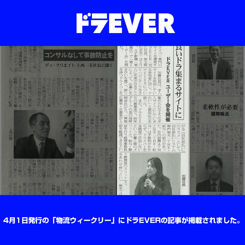 4月1日発行の「物流ウィークリー」にドラEVERの記事が掲載されました。 ドラEVER ブログ NEWS 4月1日発行の「物流ウィークリー」にドラEVERの記事が掲載されました。 Tweet 4月1日発行の「物流ウィークリー」にドラEVERの記事が掲載されました。 投稿ナビゲーション 前の記事へ 次の記事へ