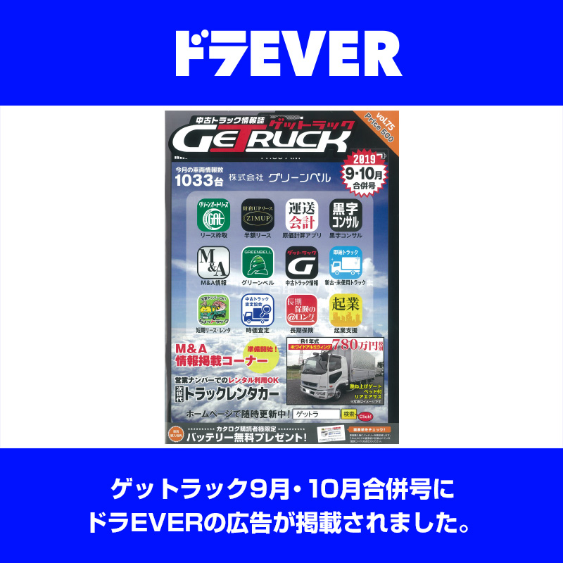 「ゲットラック」2019年9日・10月合併号にドラEVERの広告が掲載されました。 ドラEVER ブログ NEWS 「ゲットラック」2019年9日・10月合併号にドラEVERの広告が掲載されました。 Tweet 中古トラック情報誌「ゲットラック」2019年9・10月合併号にドラEVERの広告が掲載されました。 掲載された広告はこちら↓↓ 投稿ナビゲーション 前の記事へ 次の記事へ