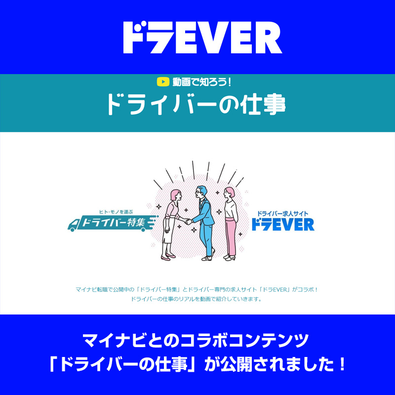 マイナビとのコラボコンテンツ「ドライバーの仕事」が公開されました! ドラEVER ブログ NEWS マイナビとのコラボコンテンツ「ドライバーの仕事」が公開されました! Tweet 求人情報サイト「マイナビ」にて、ドラEVERとのコラボコンテンツ「ドライバーの仕事」が公開されました。 「ドライバーの仕事」はこちらから 投稿ナビゲーション 前の記事へ 次の記事へ