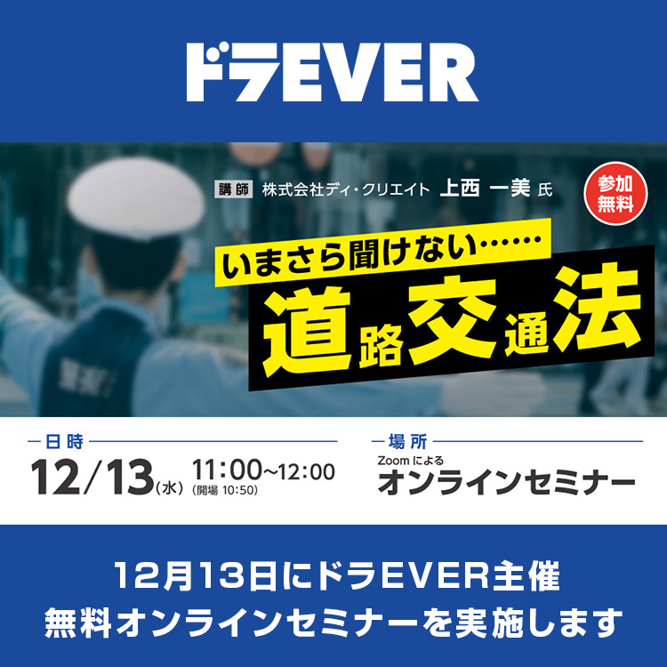 この度弊社ではYouTubeでも人気の株式会社ディ・クリエイトの上西先生を特別講師に迎え、『いまさら聞けない道交法』についてオンラインセミナーを開催 ...