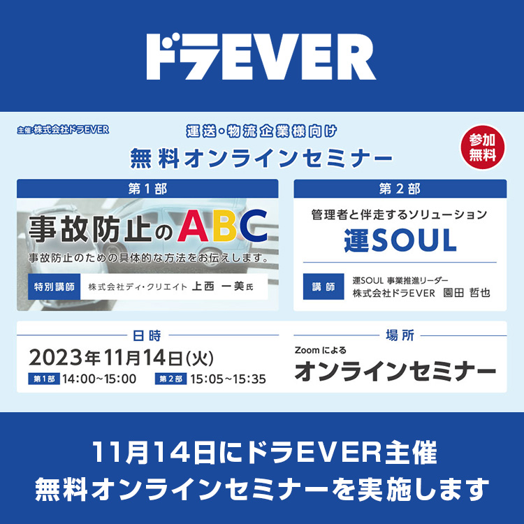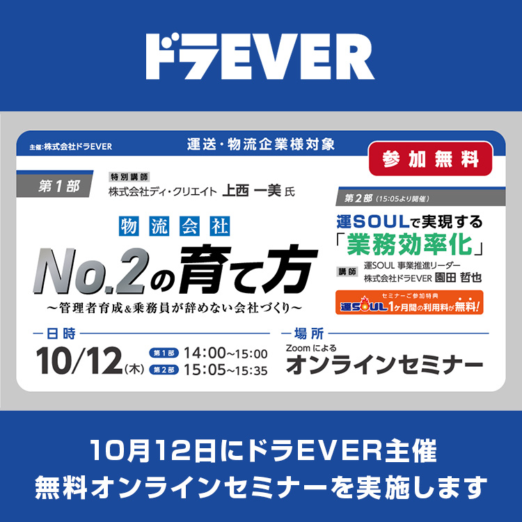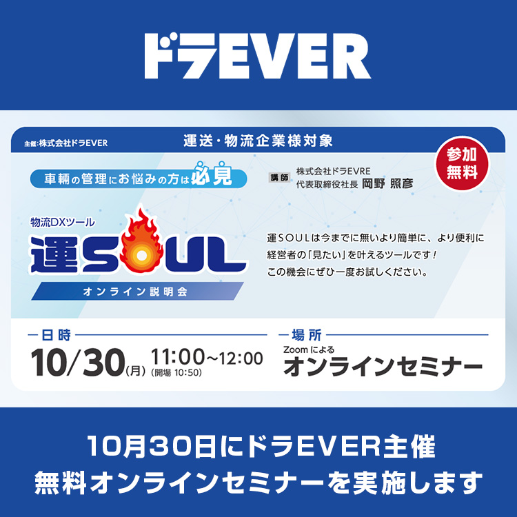 この度、前回も好評をいただきました弊社社長による『第2回 運SOUL オンライン説明会』を開催することになりました。 車輛管理に不 ...