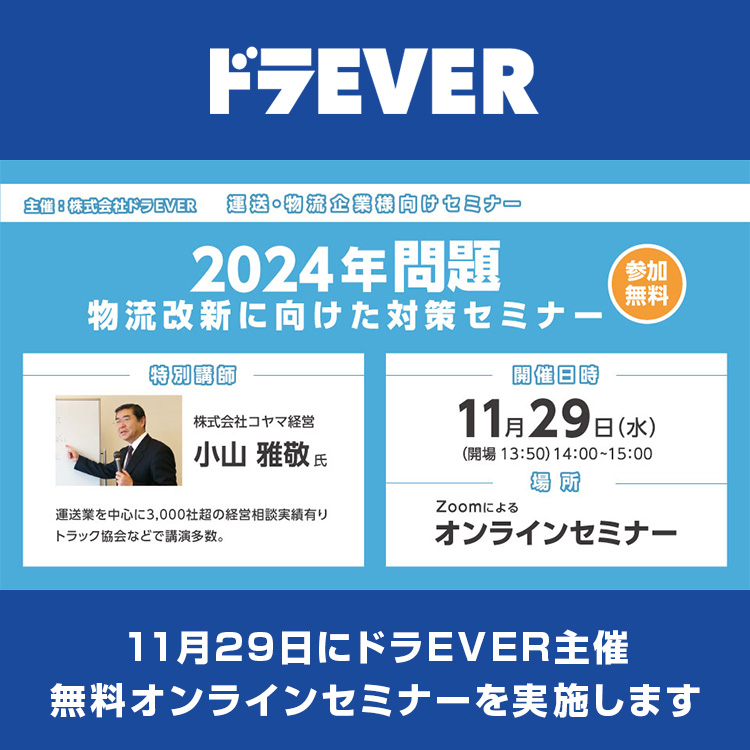 この度 弊社では株式会社コヤマ経営 小山 雅敬氏を迎え、『2024年問題 物流革新に向けた対策セミナー』についてオンラインセミナーを開催することにな ...