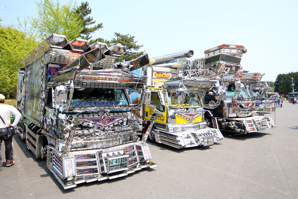平成28年5月1日 笠松運動公園第4駐車場 快晴の中、東日本大震災復興支援チャリティー撮影会が行われました。 圧巻のデコトラ達! 並ぶと壮観ですね ...