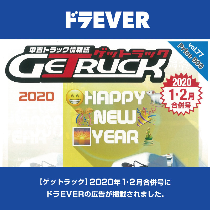 中古トラック情報誌「ゲットラック」2020年1・2月合併号にドラEVERの広告が掲載されました。 <掲載された広告はこちらになります>