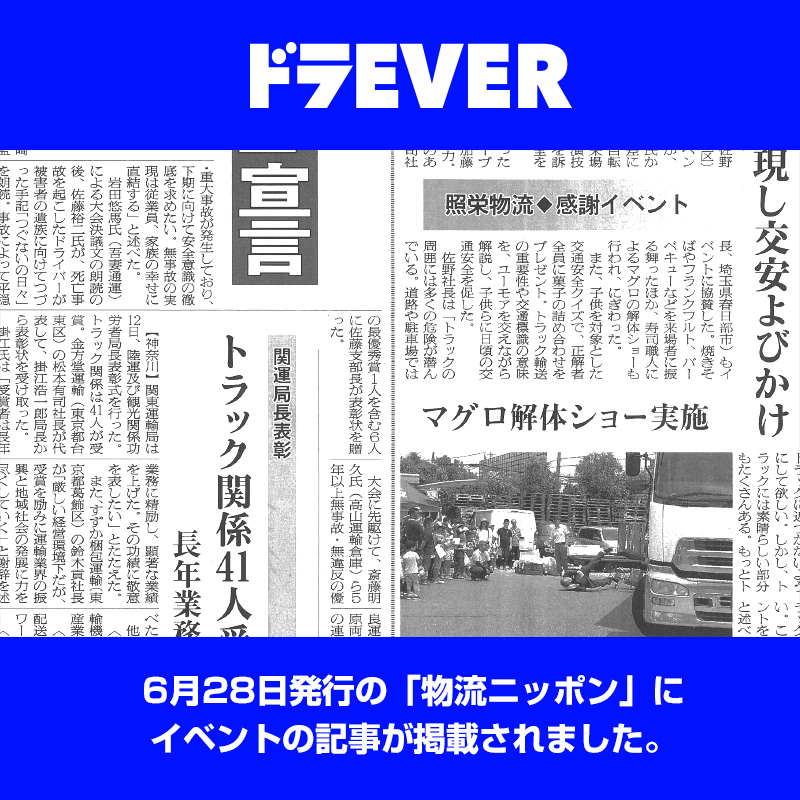 6月28日発行の「物流ニッポン」に照栄物流でのイベントの記事が掲載されました。
