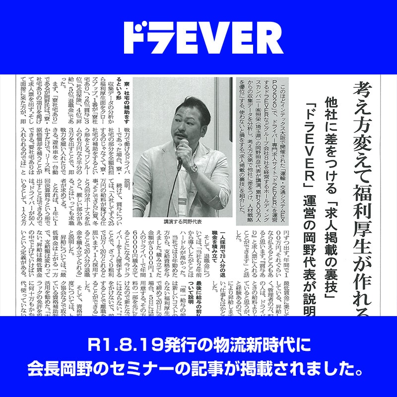8月19日発行の「物流新時代」に会長岡野のセミナーの記事が掲載されました。