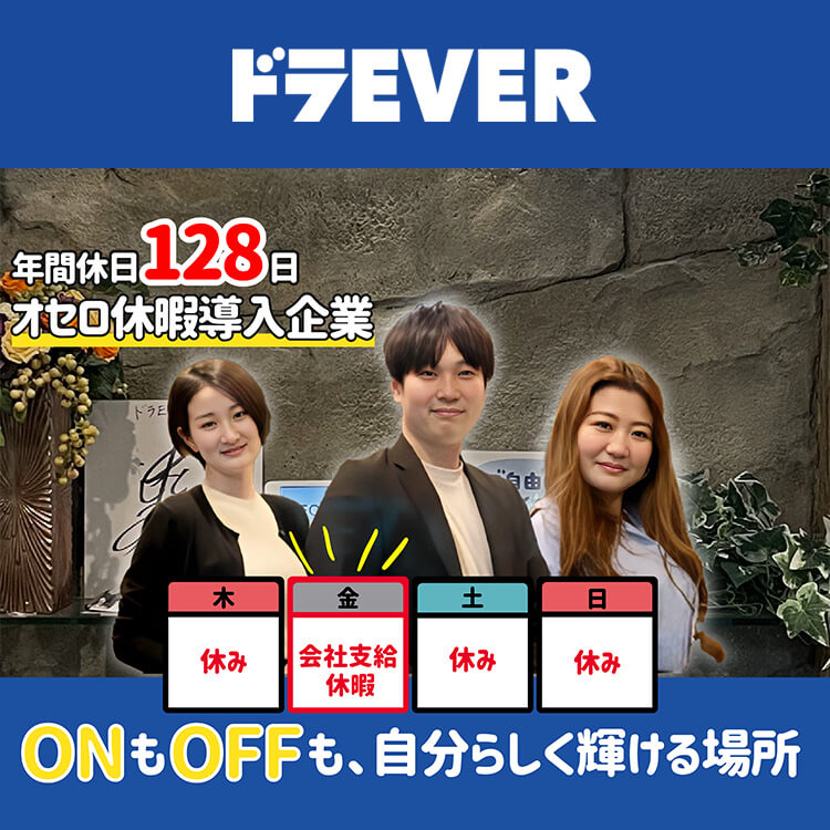 「オセロ休暇」で3・4連休がトップクラスに多い会社へ!年間休日128日で働きやすさを追求! 株式会社ドラEVER(本社:東京都港区、代表取締役:岡野照彦) ...