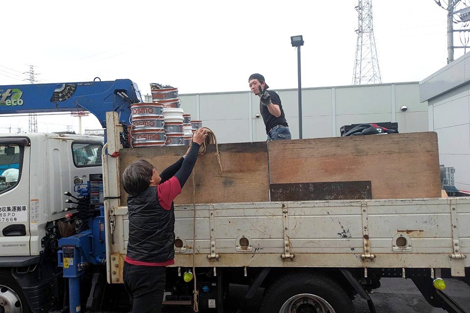 また、固定のお客様の担当現場(主にマンション、ホテル、老人ホーム、商業施設)において、廃材回収と配達業務を行っています。対応エリアは近場が中心ですが、遠方への依頼にも対応しています。