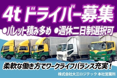 4tのコンテナ車、平ボディ車、ウィング車に乗務していただきます。