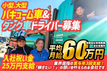 「バキューム車」のドライバー求人・運転手求人を探すならドラEVERにお任せください!