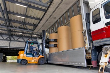 →トラックで紙製品や生活雑貨等の引取と配送です。