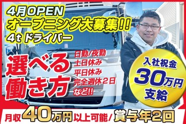 ★運ぶのは私たちの生活を支える《食品》★4tトラック(冷蔵)で配送をお願いします!■センター間のみの固定配送 店舗配送が無いのでラクラク♪■軽い荷物が多い! 力仕事に自信が無くてもOK!■手積み・バラなし パレット・カゴ車を使って輸送!トラックドライバーのお仕事が【初心者】でも始めやすい!<知識・経験・年齢・性別>問わずにみなさん活躍中の職場です♪