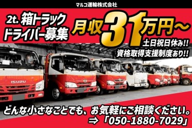 【2tドライバーのお仕事】物流拠点からニトリ店舗等へ商品を輸送していただきます。積み荷はニトリ商品(家具・家電等)がメインとなります。カゴ・バラ積みがあります。[配送エリア]・兵庫県及び大阪府全域★長距離輸送は一切ございません!★地場便のみ!プライベートな時間も大切に出来ます!★充実研修と手厚いフォロー体制でしっかりサポート!<仕事の流れ(一例)>07:00 出勤07:15 商品積込み08:00 営業所出発09:00~ 各拠点へ配送10:00 休憩11:00 営業所戻り、再度商品積込み11:45 営業所出発13:00~ 各拠点へ配送15:00 営業所帰庫・片付け・点呼16:00 退勤