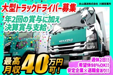 中型、大型ですが近距離配送なので長距離運転も無く、