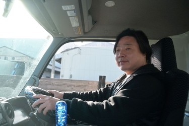 車庫からトラックにのり移動し倉庫で積み込み(30分程度)