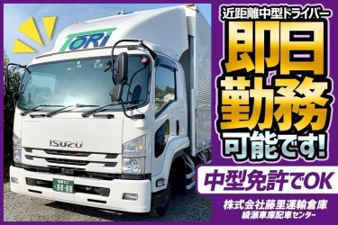 【中型・大型トラックドライバー(近距離)】近県エリアへ食品・お菓子・ペットフード・衣料品を配送して頂くお仕事です。センター便やチャーター便を1日に1~2件程行って頂きます。☆ここがPOINT☆1.大手アパレルメーカーや大手食品メーカーが中心のお取引で安定した業務量!2.今でも現場を走る社長だからこそ、無理をさせない運行スケジュール!3.充実の研修制度で未経験の方もスタートしやすい環境が整えています!