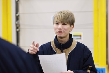 出勤後、まずは会社の倉庫でドライバーと協力し、オフィス家具をトラックに積み込みます。