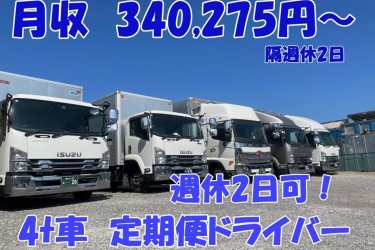 土日休み!!!※集配業務☆4t車定期便です~!!葛西にて積込みをし、八千代市で数件おろし集荷があれば集荷して葛西に戻り伝票を提出して終了!土日休みの定期便になります。~1日の流れ~※一例6:30~7:00 出勤 まずは積込みに向かいます。▼7:00~8:00 葛西で積込み。 配送へ出発します。八千代市にて数件配送▼ 13時過ぎ集荷開始(あれば)▼16:00頃 葛西へ戻り伝票を提出 集荷があればおろす▼17:00 営業所帰社点呼して終了帰宅お疲れさまでした。 ブランクのある方も大歓迎只今インフレ対策特別手当増額支給中!!