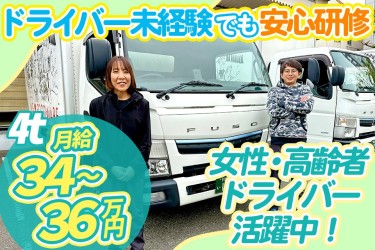 【中型(4t)ドライバー】。4tは固定ルート配送からスポットチャーターがメインとなり、荷姿に関してもパレット物やカゴ(RB)輸送、ケース物と様々な物流に携わっております。入社後はそれぞれ先輩乗務員との同乗期間を設けて自信が付くまでしっかりとフォローします。\ポイント/★ゆとりのある配車スケジュールを組んでいます。★カゴ/パレットを用いた輸送スタイルへの移行を進めています。★豊富な案件がございますので、希望、スキル、経験に応じてお任せできます。★配送先が初めての場所でも先輩・内勤者がサポートするので安心してください。