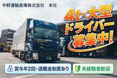 【中型5トン】月収35万前後(22日勤務)月収40万前後(25日勤務)【大型】月収40万前後(22日勤務)...
