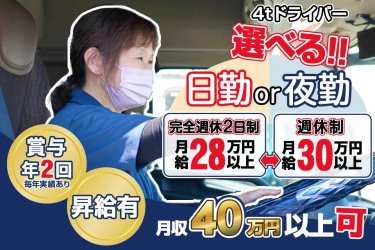 大型 夕方・深夜 日給 1万7300円+賞与 / 日勤 日給 1万6180円+賞与