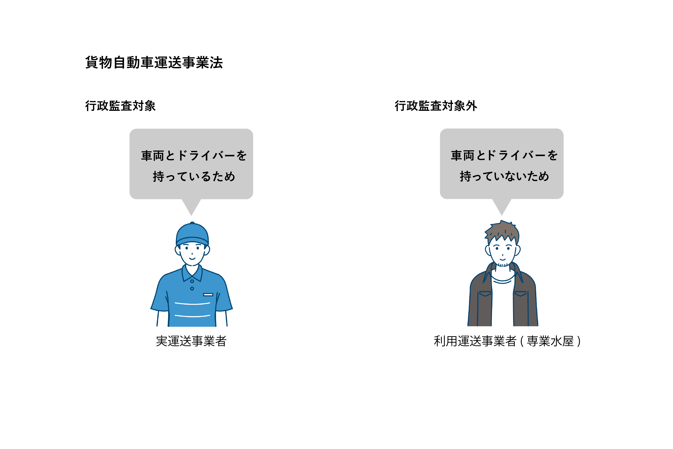 また、貨物自動車運送事業法自体が車両とドライバーを持つ実運送事業者を対象とした法律であるため、今回の改正内容が専業水屋には直接及ばないことになります。そのため前述した附帯決議が付されたという経緯があります。
