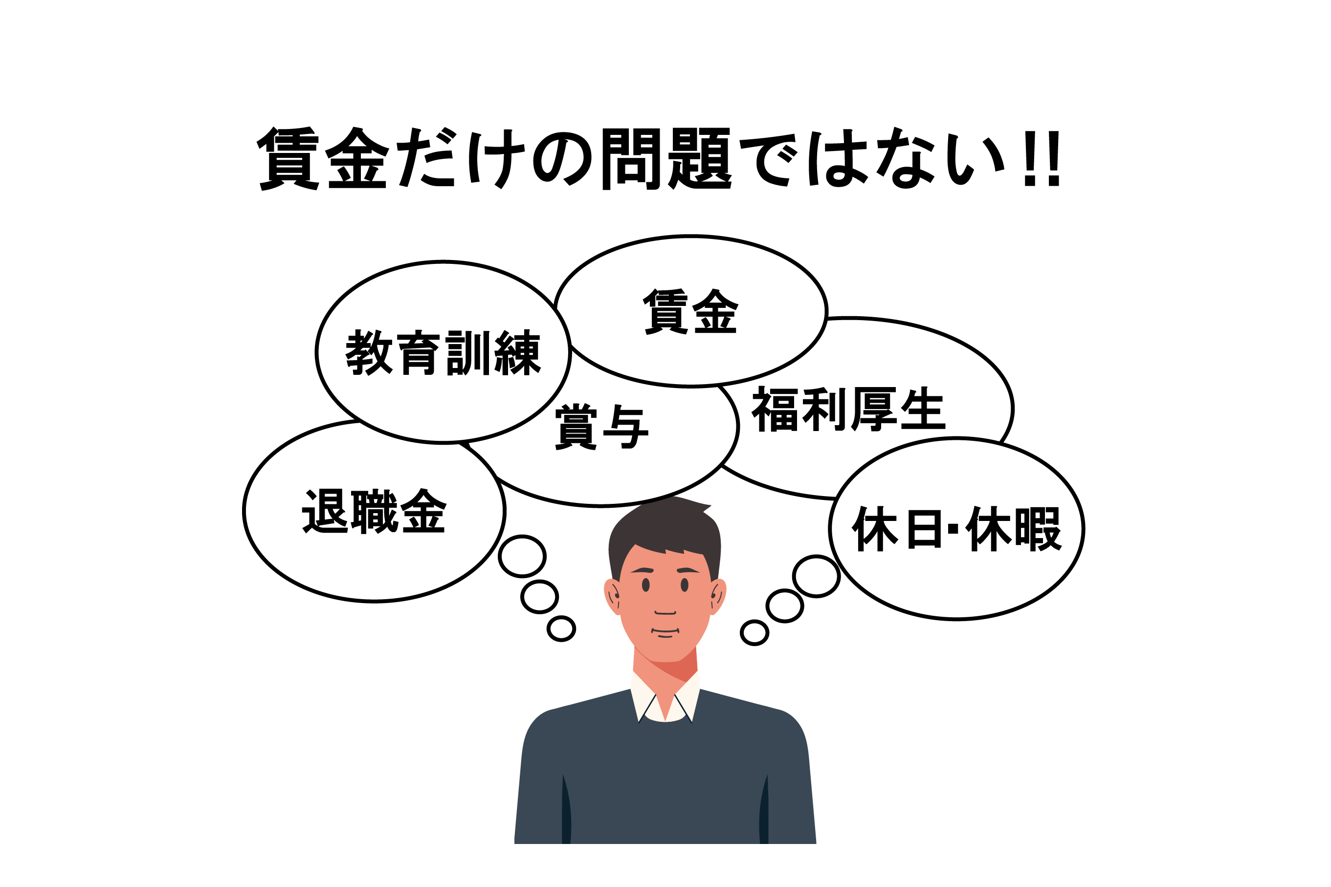 「同一労働同一賃金」というと、賃金だけの問題のように聞こえますが、実は賃金だけでなく、賞与や退職金・福利厚生・教育訓練・休日・休暇など全ての待遇が対象になっています。