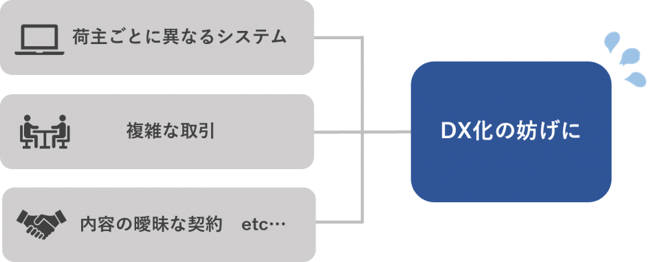 そのDXの推進において遅れているのが物流分野と言われています。一方で最も変革の効果が高いと見込まれ、早急な社会的推進が期待されているのも物流分野なのです。それだけ期待されているのになぜ物流分野、特に運送業においてDX推進が進まないのでしょうか。その要因を考察すると大きく3つの要因を挙げることができます。