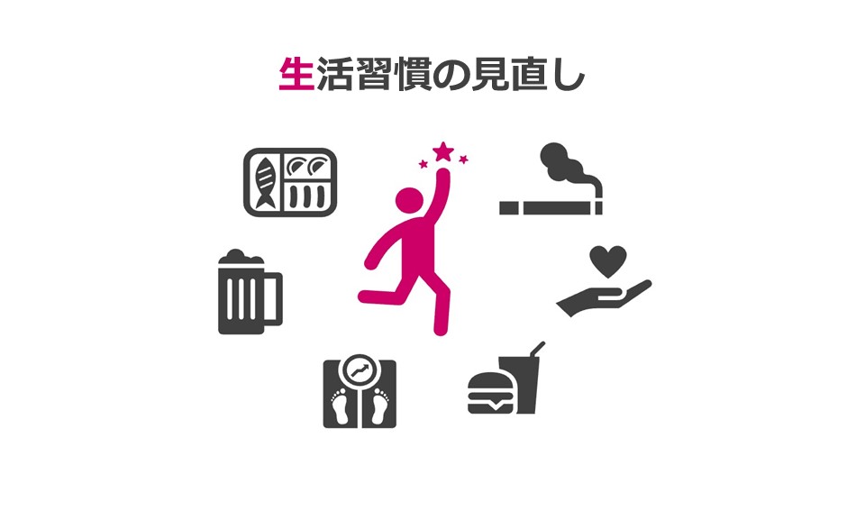 バランスの良い食事に心がけ、運動習慣を取り入れ、喫煙者は禁煙に取り組むことが望まれます。