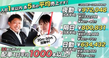 多数の顧客や、事前予約制配車、完全予約制配車アプリ、自社無線配車多数の仕事等で、流しでの営業は一切せず安定した売上を作る事のできる環境です!また、ジャパンタクシーの取り扱いも多くお客様から喜んでいただけます!