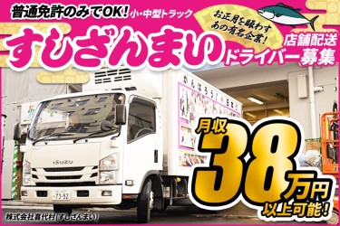【3tトラック・食材配送ドライバー】「すしざんまい」の物流センターから、「すしざんまい」の各店舗へ新鮮で美味しい食材を配送して頂くルート配送のお仕事です。ゲート車・カゴ車での配送なので体への負担は少なめ!配送先は自社店舗になりますので、お客様対応等がなく過度なプレッシャーを背負う心配もありません。納品時には店舗のスタッフが取りに来てくれることが多いので、初心者の方でも安心してお仕事していただけますよ。★1日の流れ★深夜1:45に出社後、まずは配送センターに届いた新鮮な魚介類をリストを確認しながら店舗ごとへ仕分けをして頂きます。↓仕分け完了後は、カゴ台車にてトラックへの積込作業を開始!万が一のために、ダブルチェックを行います。↓トラックへの積込完了後、新宿方面、築地方面、神奈川方面など全6コースに振り分け。配送していただくエリアは日ごとに異なります!↓トラックに乗って、出発!決められたエリアのすしざんまい店舗へ、食材をお届け開始。朝が早いかわりに、12:45くらいにはすべての業務が終了し退社出来ます!