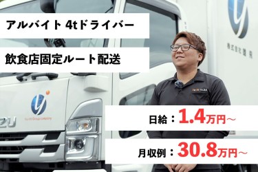 【アルバイト 4tドライバー/ 飲食店への固定ルート配送】