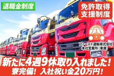 【大型ドライバー】案件は様々!!希望を考慮した案件をお任せします。・大手物流会社の拠点間輸送 関東一円の拠点間輸送(手積み)。高収入が期待でき自宅から通勤できます。 関東と東北方面の拠点を結ぶ輸送(手積み)です。1泊2日運行が基本となります。・ショッピングモール等の小売店向け輸送 大手小売店のショッピングモールへカーゴ台車での配送です。 パワーゲート付き車両での運行となります。多数の女性も活躍中。・郵便輸送拠点間配送 都内の郵便局間の輸送がメインです。 カーゴ台車100%使用で手積み無し。・アパレル関係輸送 指定の集荷先から梱包又はハンガー集荷です。(手積み有り)・自動車部品輸送 タイヤ、ホイール、ブレーキ部品等の運送。 積降ろしにフォークリフトを操作する場合が有ります。・その他チャーター輸送 建材輸送から電化製品の輸送など大型ウィング車でのチャーター便です。 殆ど手積みは有りませんが中・長距離運行もあります。