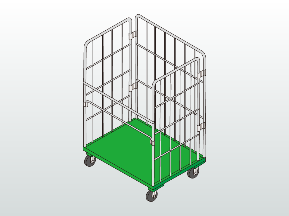 外周3面が棚で囲まれ、1面が開口しているキャスター付きの台車。パレット機能も持ち、俗に「かご台車」、「コンビ台車」と呼ばれ、仕分場の一時保管やトラックへの積み込み場までの搬送に用いられたりする運搬台車の一種 ...